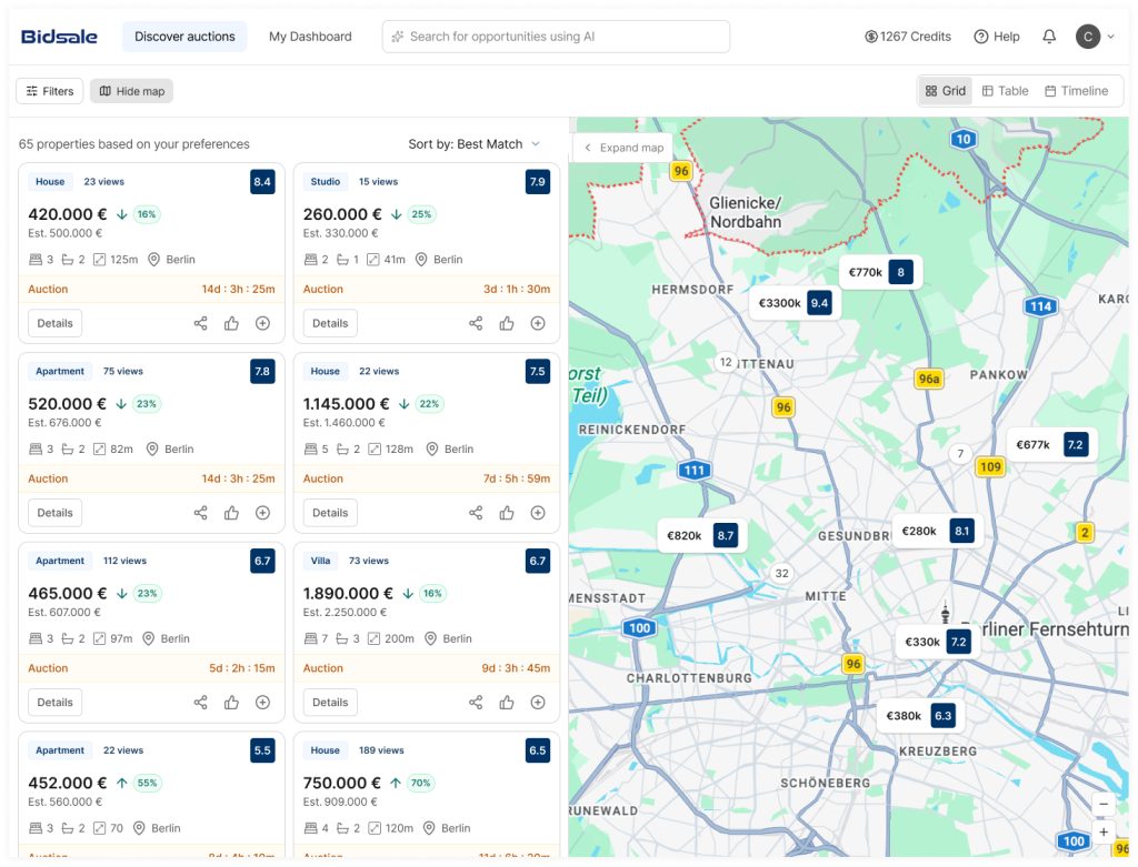 VendueTech began as a real estate data platform, bringing together expertise and technology to drive future innovation. This vision led to Bidsale, a comprehensive auction intelligence system providing access to distressed real estate auctions across Europe. With real-time data and market insights, Bidsale aims to empower investors to make informed decisions and unlock new opportunities.