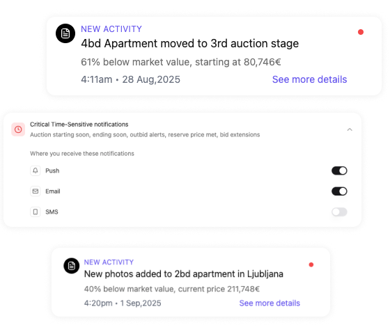 Bidsale’s notification system is designed to surface what matters to you based on your rules, not generic alerts. As the platform evolves, notifications will adapt to your investment logic, data inputs, and legal thresholds, helping you stay informed without constant monitoring.