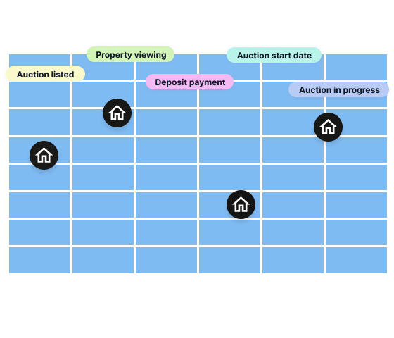 Track the progress of each auction from start to finish. Stay updated on key milestones, deadlines, and status changes, ensuring you never miss an important development. Visual representation of auction events, giving you full oversight throughout the entire process.