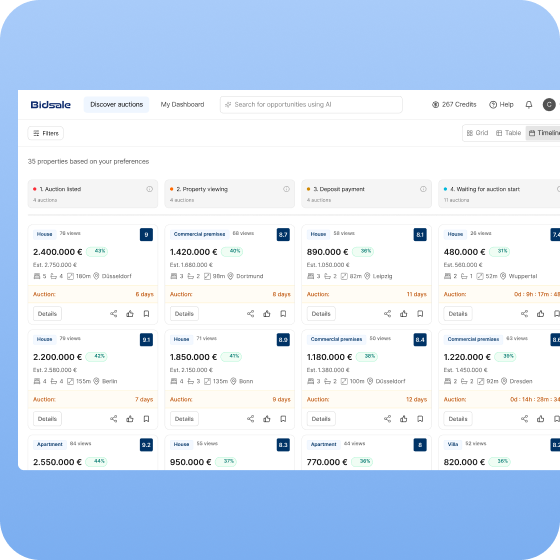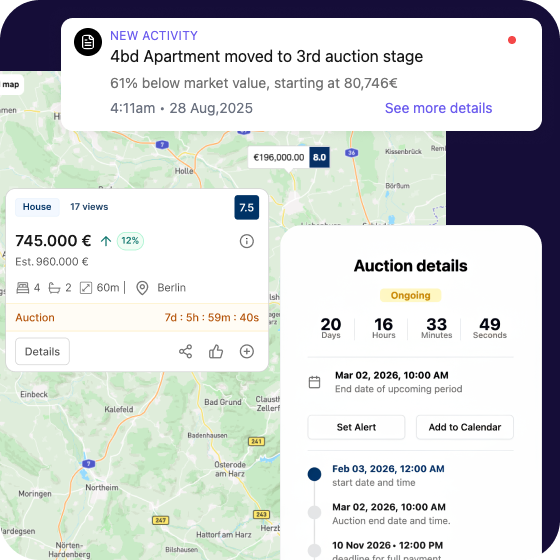 Discover and evaluate real-estate auctions across Europe with greater clarity and structure.